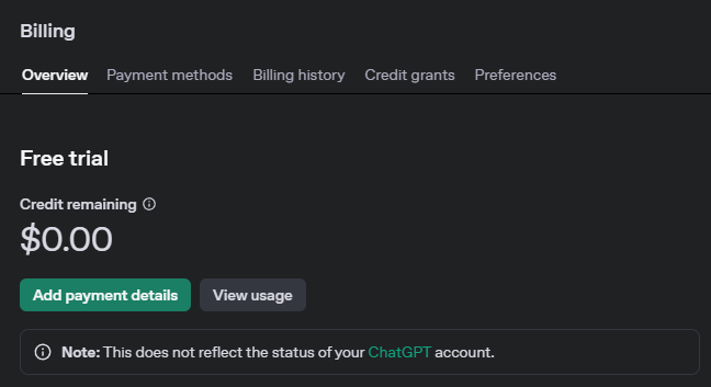 - Visit https://platform.openai.com/account/billing.